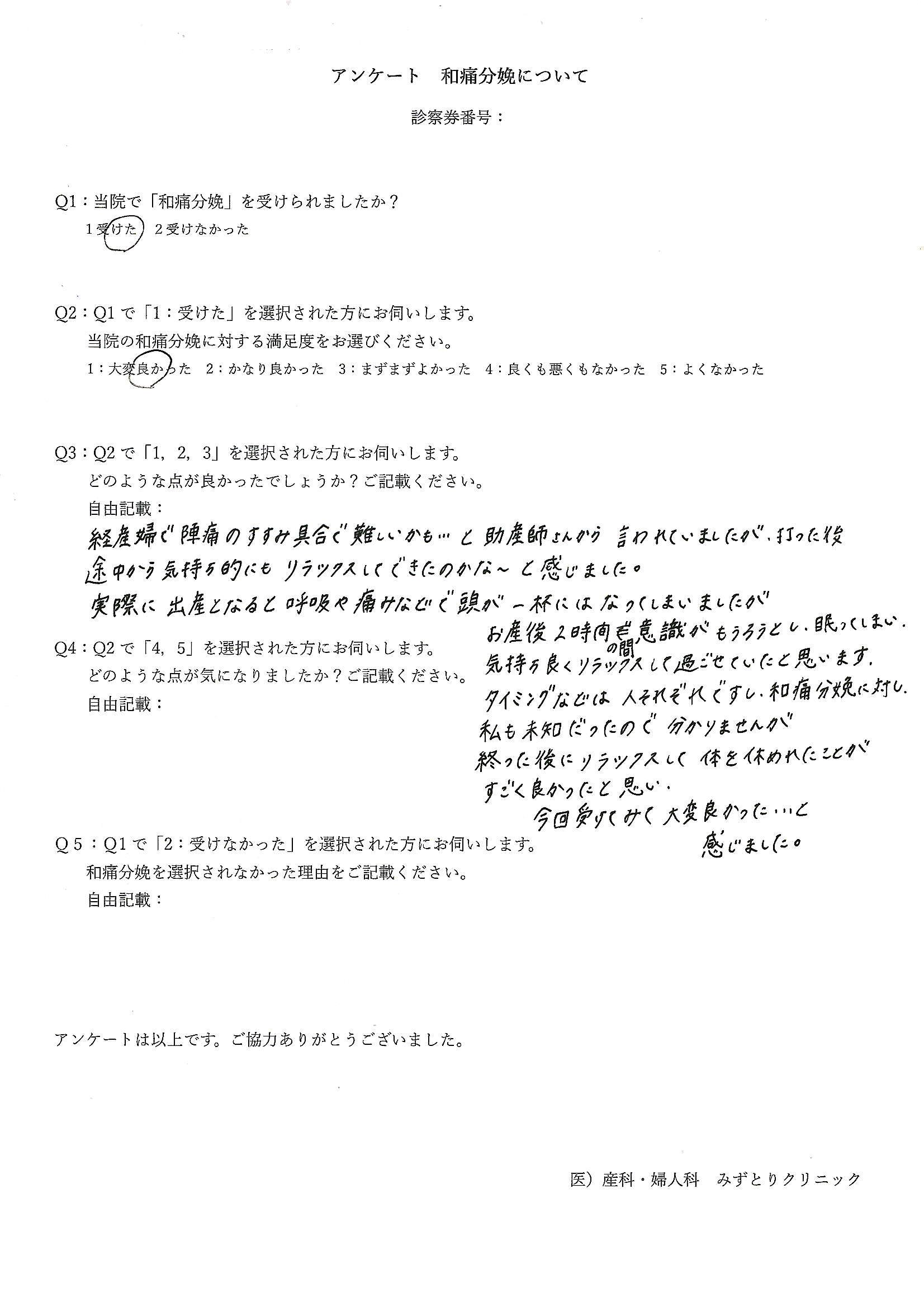 自由記載:経産婦で陣痛のすすみ具合で難しいかも…と助産師さんから言われていましたが、