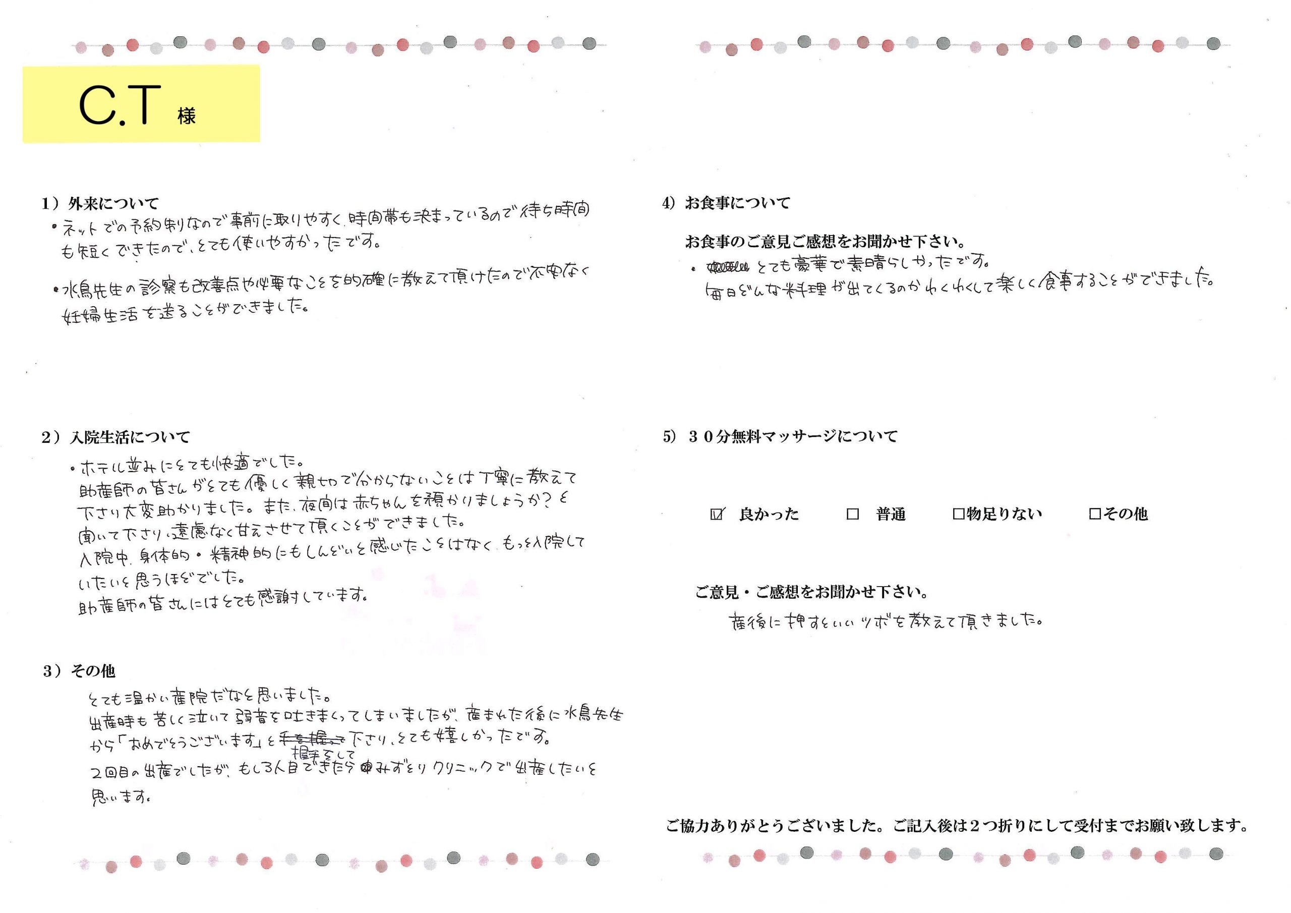 2回目の出産でしたが、もし3人目ができたらみずとりクリニック出産したいと思います。