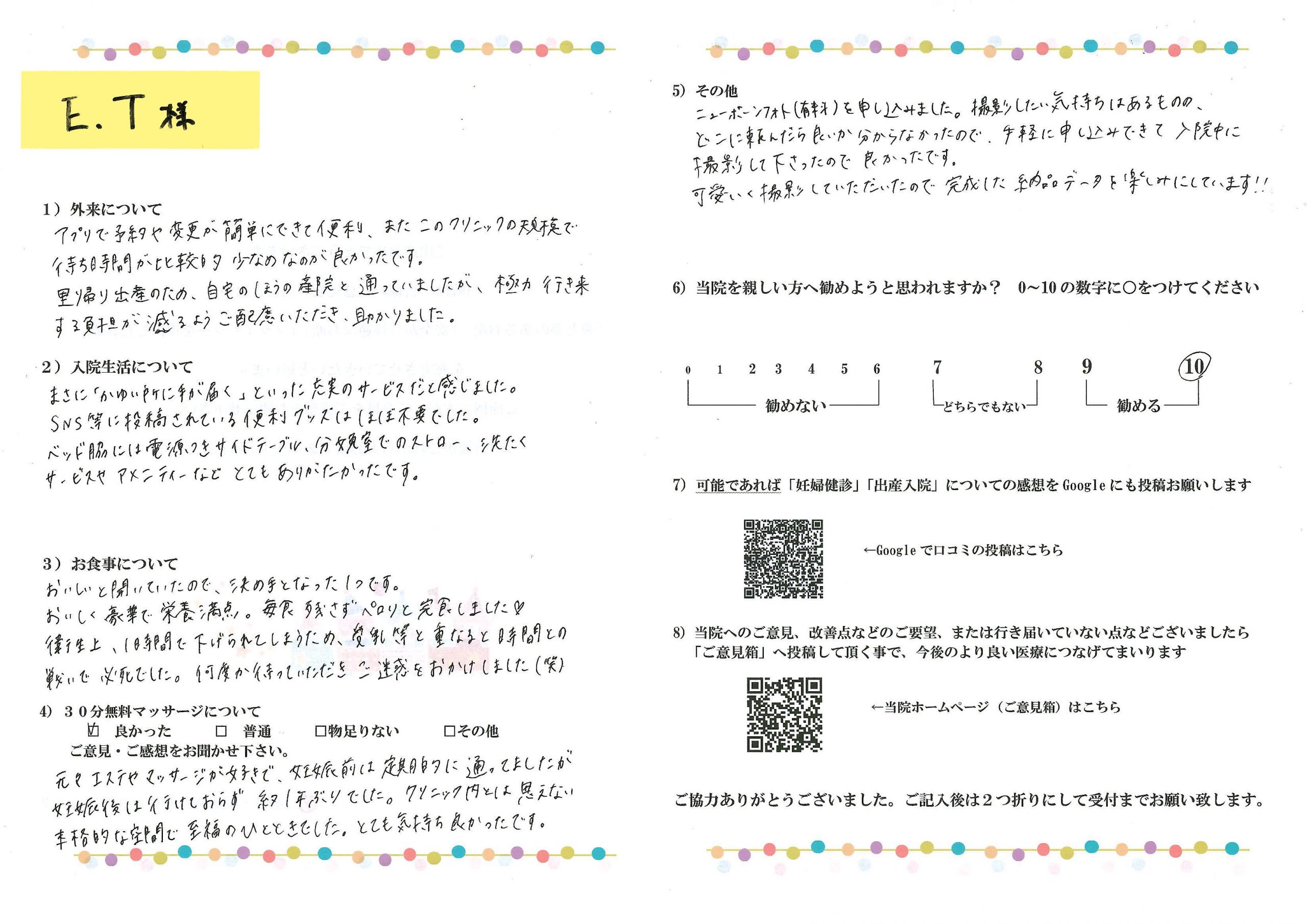 里帰り出産のため、自宅のほうの産院と通っていましたが、極力行き来する負担が減るようご配慮いただき、助かりました。