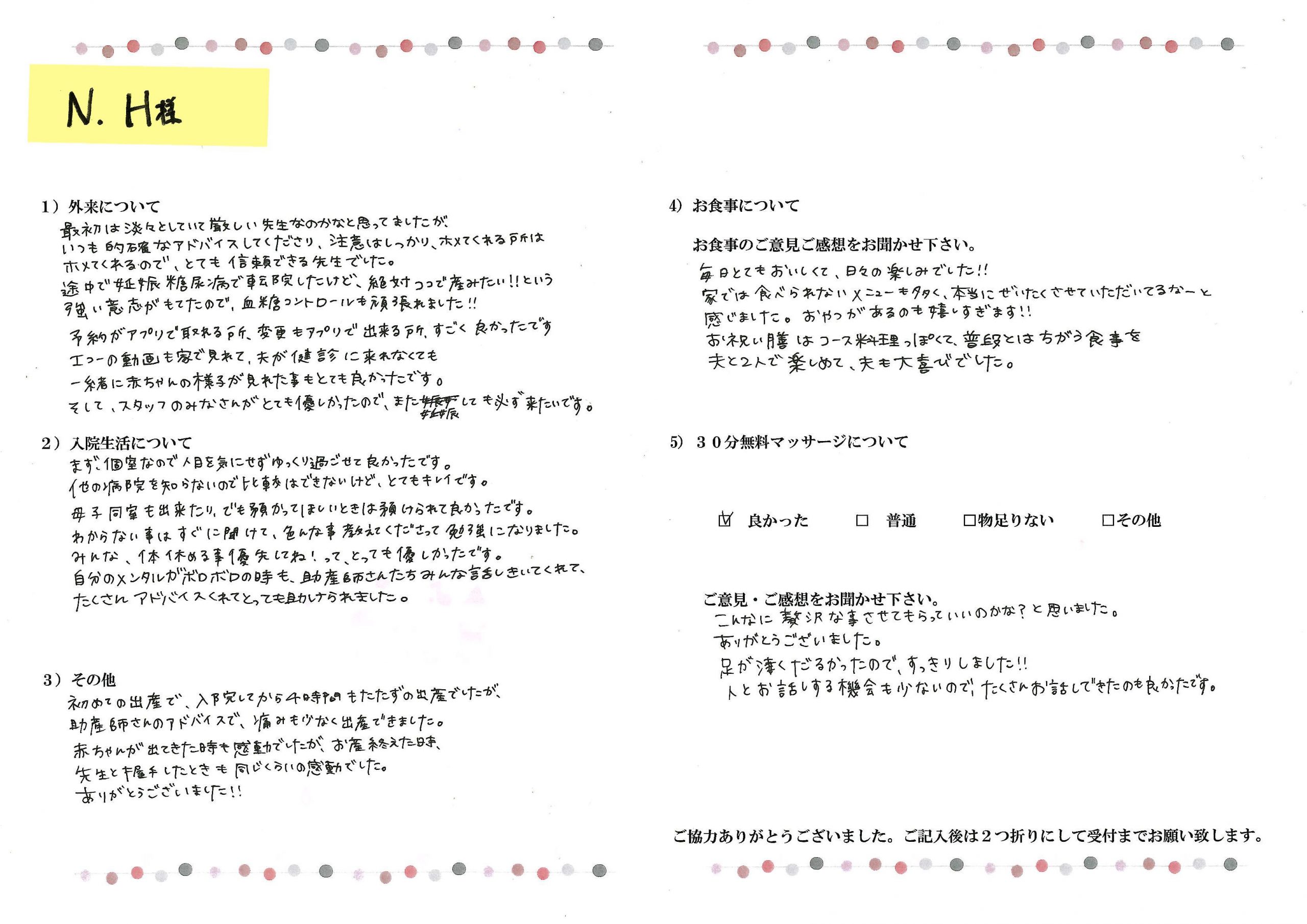 産後アンケート(口コミ)N.H様