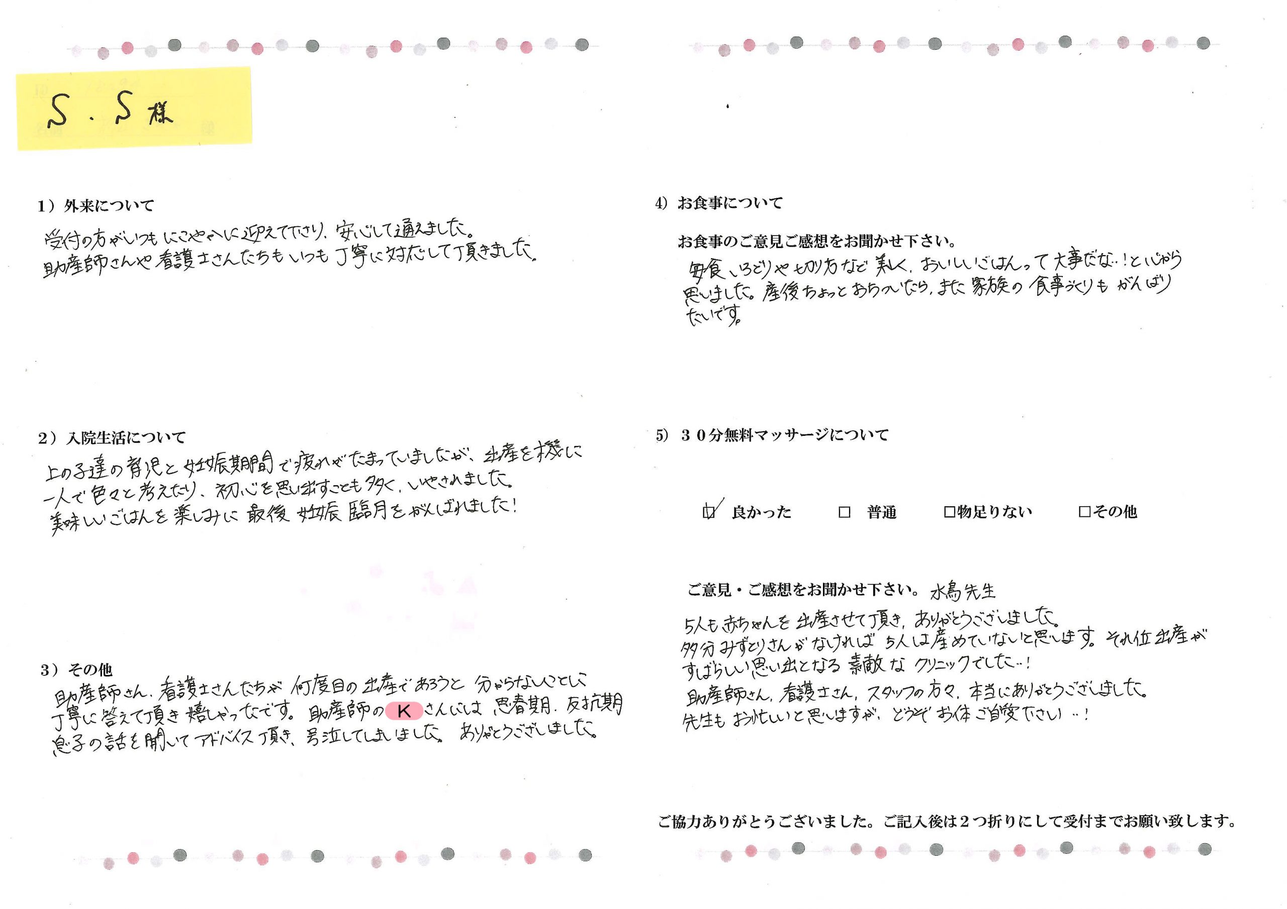 産後アンケート(口コミ)S.S様