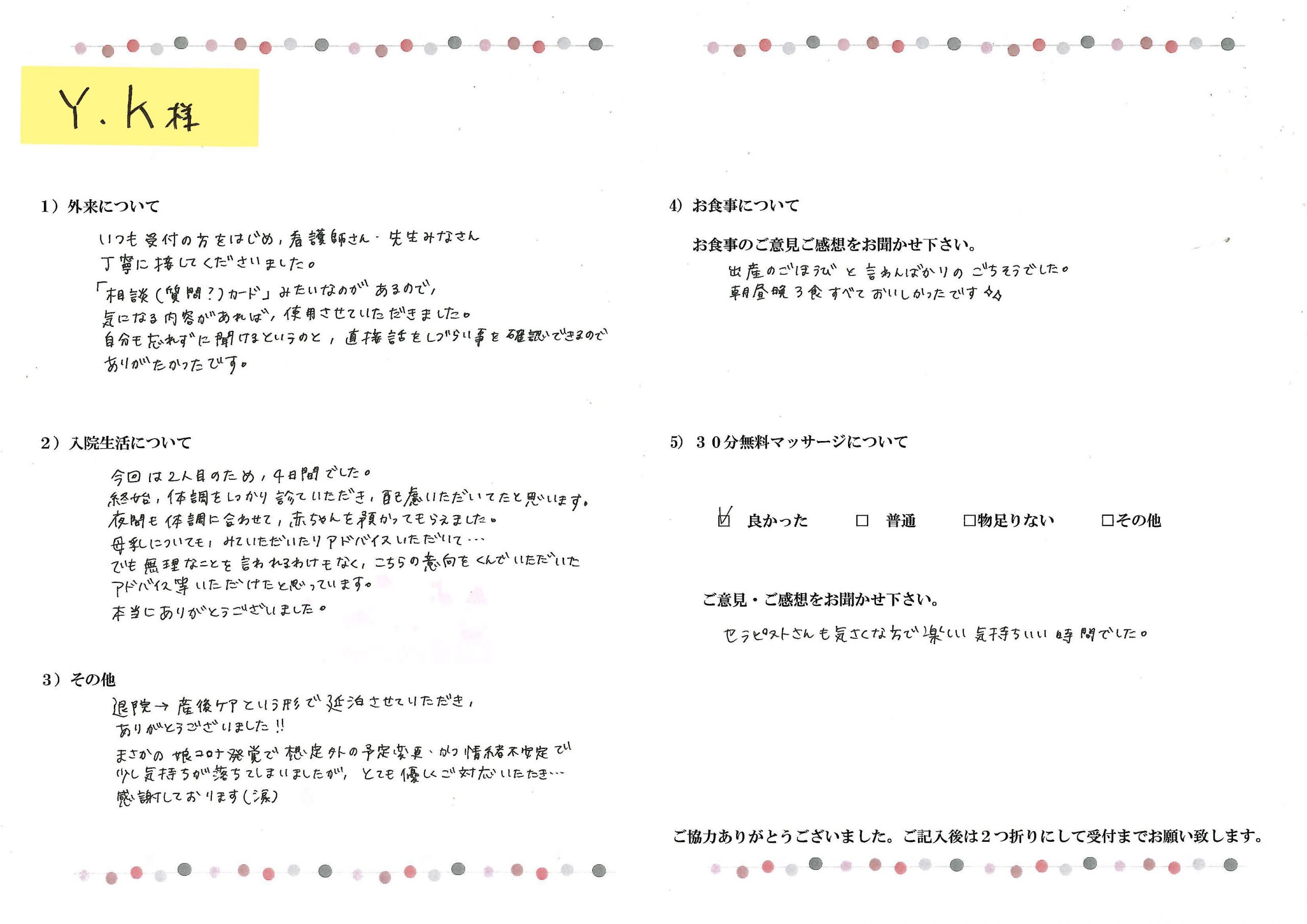 産後アンケート(口コミ)Y.K様