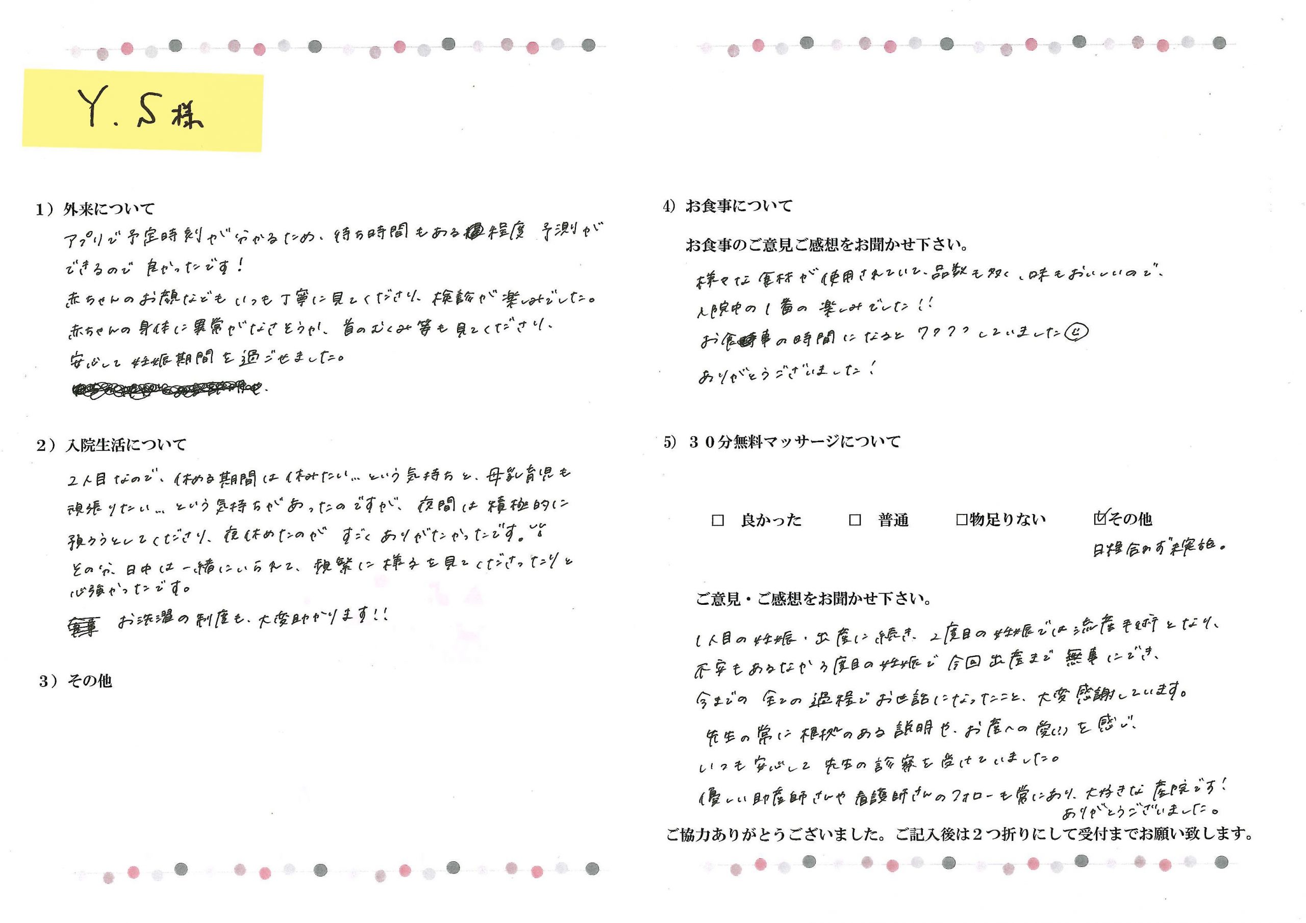 産後アンケート(口コミ)Y.S様